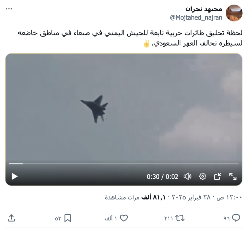 تحقق يوب يوب من الادعاء وتبين أنه مضلل إذ أن المقطع قديم ونشر في 2017 لعرض مقاتلة ميغ روسية وليس من اليمن