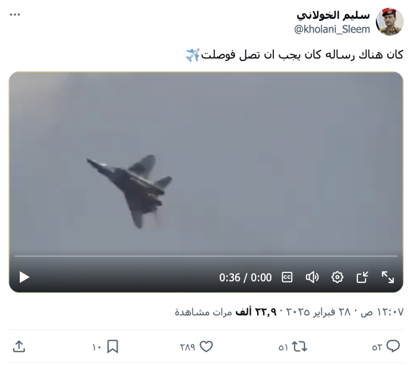 وكانت جماعة الحوثي قد تمكنت على يد خبراء من اعادة تشغيل طائرة f5 القديمة واستعرضت بها في عروضها العسكرية في سبتمبر 2023