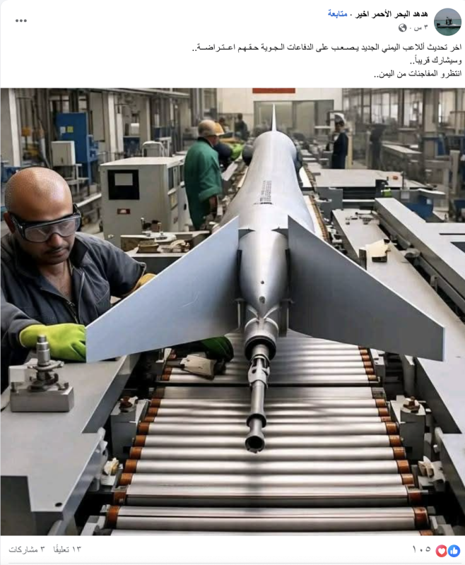 تداولت صفحات وحسابات على موقع فيسبوك صورة قيل إنها تُظهر "آخر تحديث لصاروخ يمني جديد" سيدخل الخدمة قريبا.