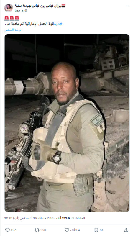 الصورة لجندي إسرائيلي من أصول إثيوبية وليست لجندي إماراتي