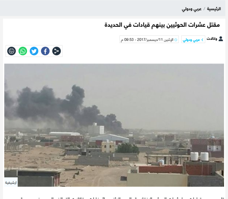 تحقّق يوب يوب من الادعاء وتبيّن أنه غير صحيح جزئيا؛ إذ أظهر البحث العكسي أن الصورة الأولى منشورة في 11 ديسمبر 2017 وتوثّق معارك وغارات بين القوات الحكومية والحوثيين في محافظة الحديدة غربي اليمن.