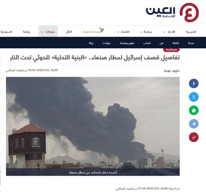 فيما تعود الصورة الثانية إلى 6 مايو 2025 وتُظهر تصاعد الدخان إثر غارات جوية شنتها إسرائيل على مطار صنعاء الدولي، ما يعني أن الصورتين المتداولتين لا علاقة لهما بالغارات التي شنتها إسرائيل مساء الخميس.