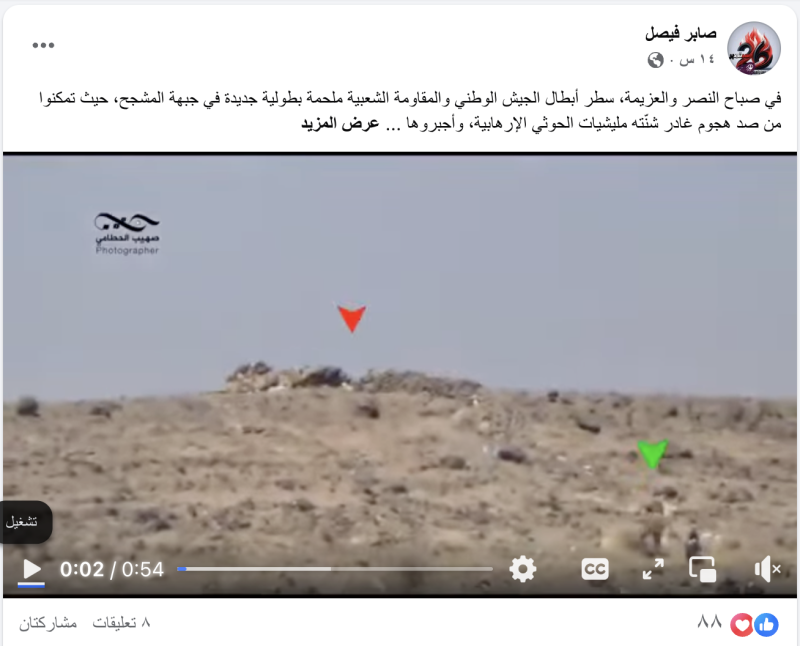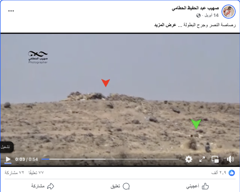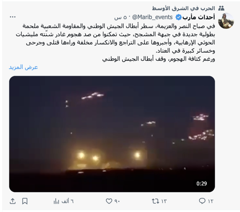 نشرت حسابات وصفحات على منصات التواصل الاجتماعي مقطعا فيديو ادعت أنهما لمواجهات حديثة في جبهة المشجح بمأرب بين الجيش اليمني ومسلحي جماعة الحوثيين